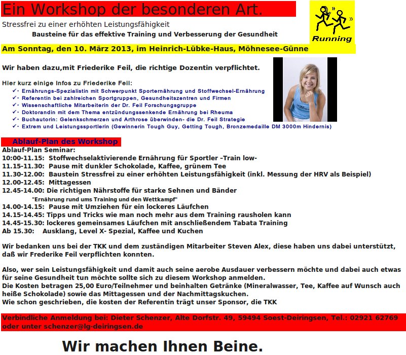 Wer kommt von Euch um sich neue Erkenntnisse in Sachen Laufsport zu holen.
