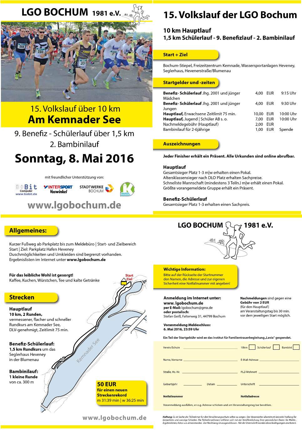 10.04.2016 Einladung zum Volkslauf am Kemnader See am 8. Mai
