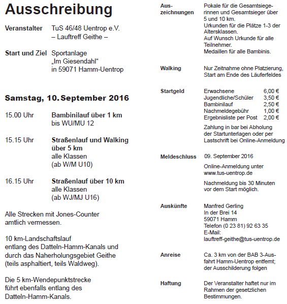 05.09.2016 | Einladung zum 15. Uentroper Herbstlauf am 10. September