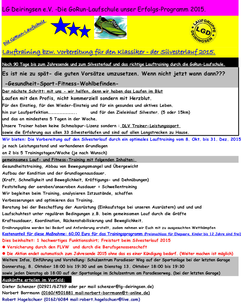 Wir haben die richtigen Trainer dafür (DLV- Trainer-Leistungssport) das sportliche Umfeld und als einziger Verein in Deutschland zwei Mitglieder die alle Silvesterläufe gefinisht haben (Hans Bröggelhoff und Dieter Schenzer).