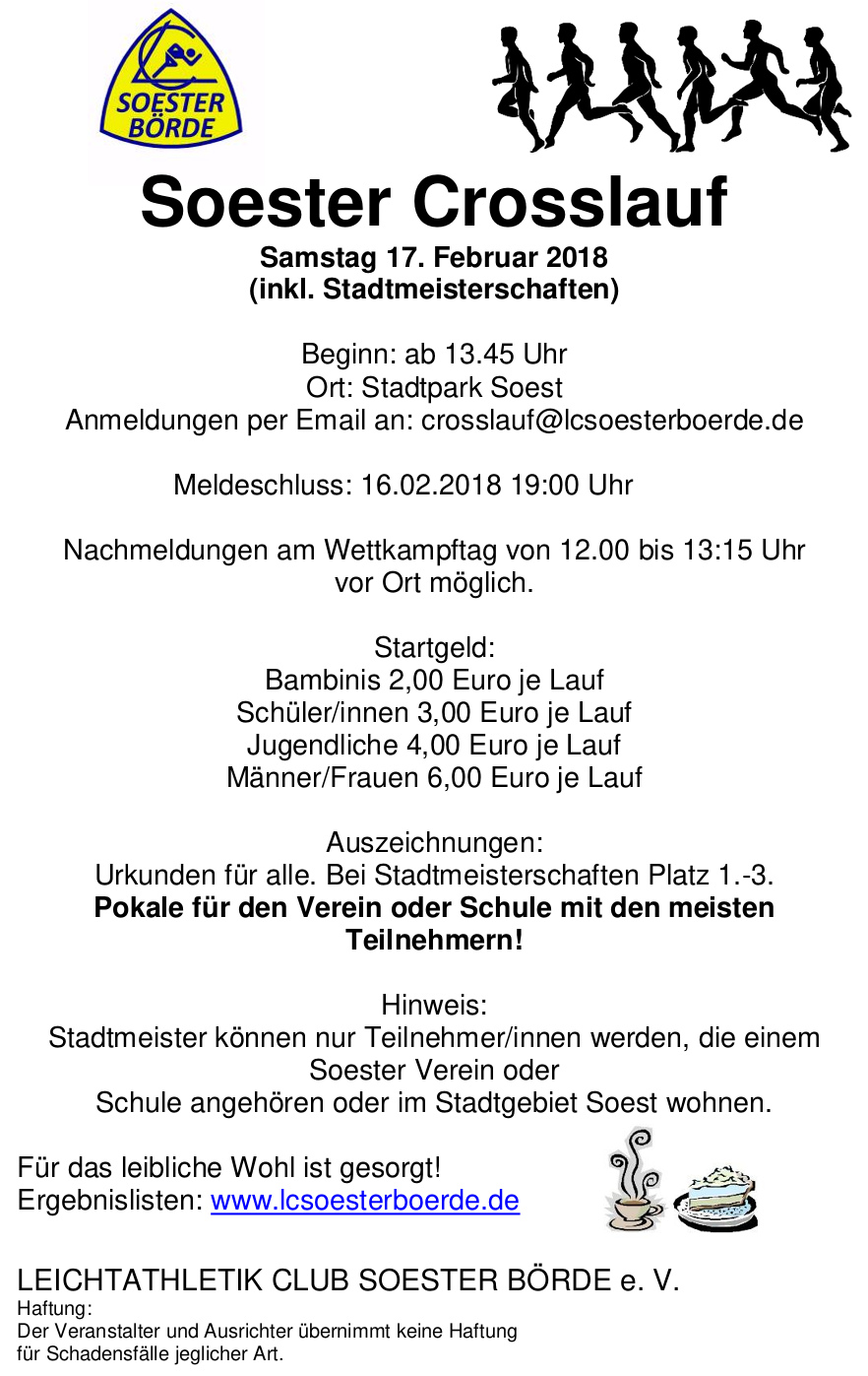 29.01.2018 | Einladung zum Soester Crosslauf am 17. Februar